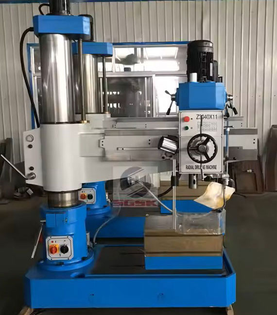 Radial drill machine is a type of drilling machine with a radial arm that allows the drill head to be positioned over a wide range of workpieces. This flexibility makes it suitable for drilling large or heavy parts, and parts with complex geometries. The machine typically has a heavy base, a vertical column, a radial arm that extends from the column, and a drill head mounted on the arm.
