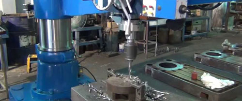 Radial drill machines are commonly used for drilling holes in Connection plates & base plates with mass drilling.
