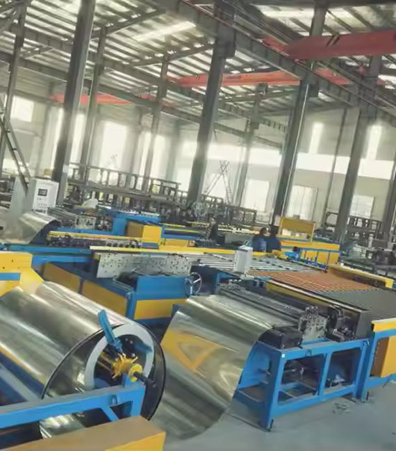 Rectangular duct machine of an automatic De coiler, feeding guide, roll forming unit, hydraulic cutter with PLC base control system. It is mainly controlled by cutting software.